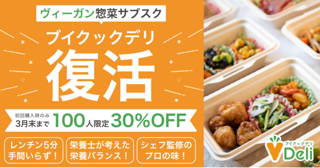 ブイクックデリの復活を記念して、3月末まで100名限定で【初回30%OFF】