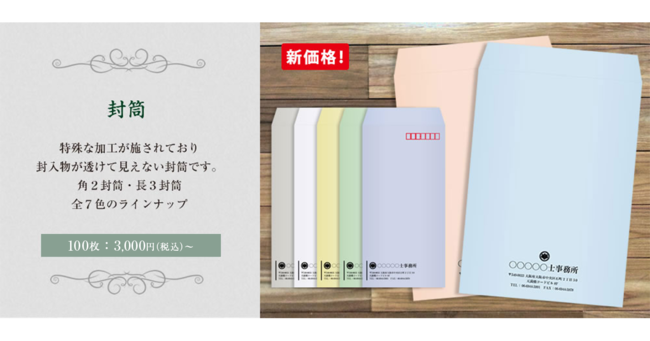 上記封筒、事務所名有・無タイプ等お選び頂けます