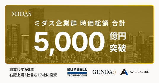 株式会社ミダスキャピタル(本社:東京都港区、代表取締役社長:吉村英毅、以下「当社」)は、投資先企業群時価総額の総計が5,000億円 *を突破したことと当社WEBサイトをリニューアルしたことをお知らせいたします。