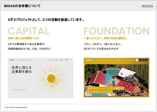 ミダスプロジェクトは、当社と公益財団法人ミダス財団で構成されています。