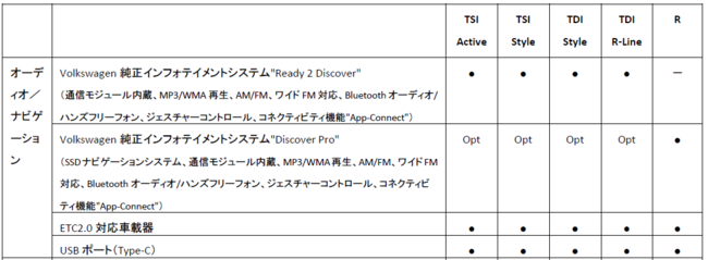 ・ Discover Proパッケージ(TSI Active / TSI Style / TDI Style / TDI R-Line) ・・・¥ 154,000