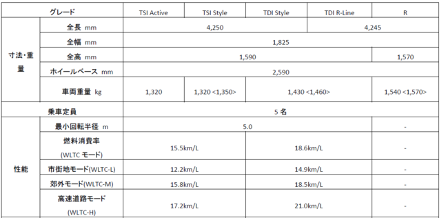 *T-Roc Rは輸入自動車特別取扱制度届出のため、燃料消費率や最小回転半径は国土交通省への届け出項目に含まれておらず測定値がありません。