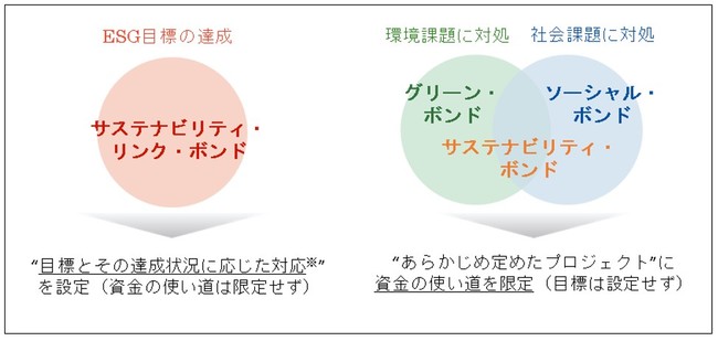 そのため、借り入れた資金の使い道を、あらかじめ設定したプロジェクト等に限定するグリーンボンド等とは、仕組みが異なります。