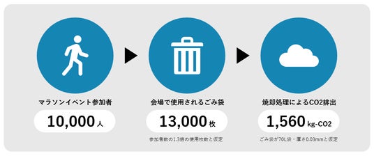 マラソンイベントで使用されるごみ袋の環境負荷イメージ(サティスファクトリー試算)
