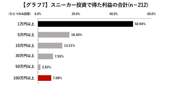 スニーカー投資で得た利益は約半数が「1万円~5万円」。