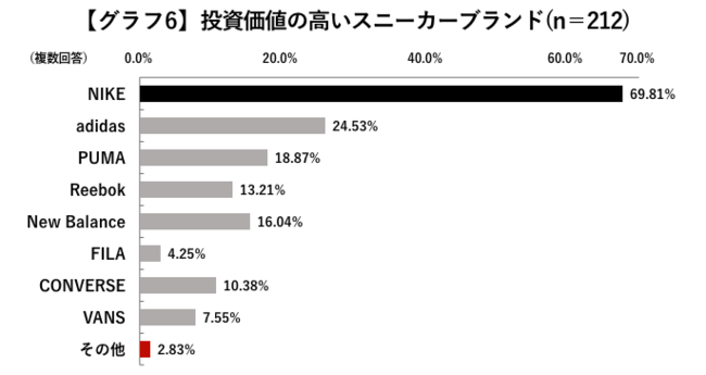 ブランドごとの投資価値では「NIKE」が約7割と一強。