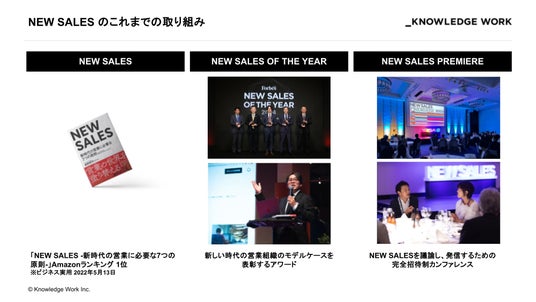 ナレッジワークはこれまでも「NEW SALES」を普及させ、 営業という仕事を変革していくきっかけを生み出し続けるために、書籍の出版、営業組織のモデルケースを表彰するアワード、完全招待制カンファレンスなど様々な活動を行ってまいりました。
