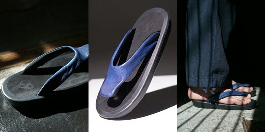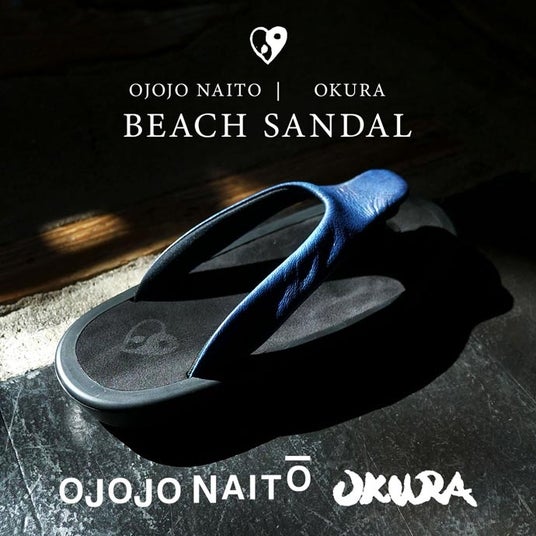 京都・祇園の履物ブランド〈OJOJO NAITO〉に、聖林公司のオリジナルブランド「BLUE BLUE JAPAN」の旗艦店〈OKURA〉が別注を依頼した、スペシャルなビーチサンダルです。