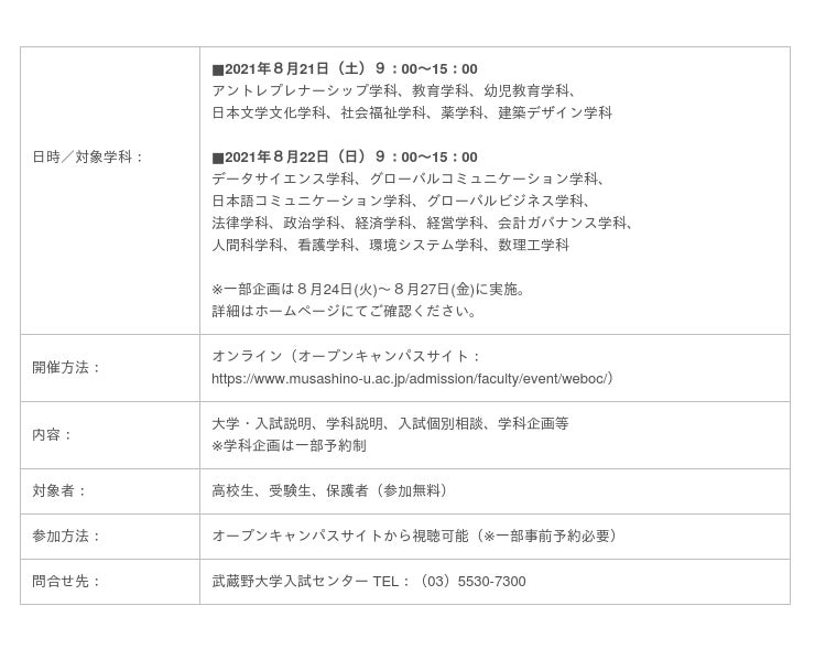 オープンキャンパスサイト:https://www.musashino-u.ac.jp/admission/faculty/event/oc/