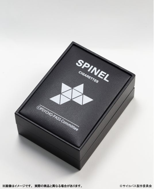 狡噛の愛煙するタバコ「SPINEL」のロゴ部分をモチーフに仕上げたペンダント。中央には狡噛の誕生石であり、タバコの名前とも重なるスピネルをあしらいました。大小2サイズ展開で、男女ペアでの着用もおすすめです。