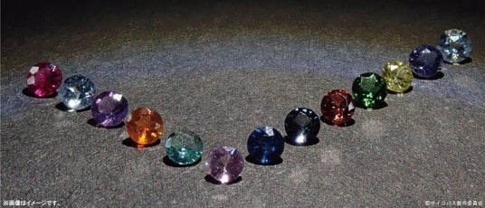 2連ペンダントに使用する13の宝石は、各キャラクターのイメージカラーを忠実に再現できるよう、厳選した色とカットの天然石をご用意しました。