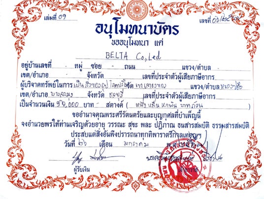パタヤにある孤児院よりいただいた感謝状