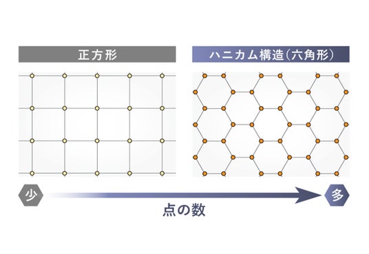 正六角形を隙間なく並べたハニカム形状を採用しているので、優れた通気性を実現。