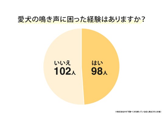 犬を飼っている200人を対象にしたアンケートによると、愛犬の鳴き声に困った経験がある人は「98人(約49%)」と、ほぼ半数にのぼることがわかりました。