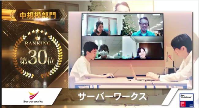 アマゾン ウェブ サービス(以下:AWS)の AWS プレミアティアサービスパートナーである株式会社サーバーワークス(本社:東京都新宿区、代表取締役社長:大石 良、以下:サーバーワークス)は、Great Place to Work(R) Institute Japan が選出する「2023 年版『働きがいのある会社』ランキングの中規模部門(100~999名)において 30 位を獲得し、6 年連続でベストカンパニーに選出されたことをお知らせします。