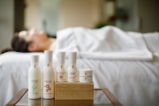 世界も認めるハンドトリートメントテクニックはもちろんのこと、世界中から集められた最先端テクノロジーと原料 にこだわった化粧品を使用しています。また、海外からお越しのお客様にも、日本ならではの美しさを感じていただきたいという想いから、日本の伝統文化を取り入れ、京都・若宮八幡宮でご祈祷いただいた日本発のスパ専用プロフェッ ショナルスキンケアブランド、「chi to se true」の開発・製造も行っています。