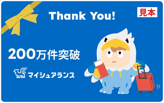 Mysuranceは、2019年3月の営業開始から約5年2か月で累計契約件数100万件を突破し、その後、旅行のキャンセル保険を中心に利用が拡大し、約1年8か月で累計200万件に到達しました。これを記念し、日頃のご愛顧への感謝を込めて、総額200万円分の旅行券が当たるキャンペーンを実施いたします。