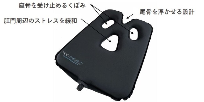 2つのお尻の骨(座骨)をくぼみが受け止める事で安定させ、尾骨を浮かせ、肛門付近の負担を軽減させます。
