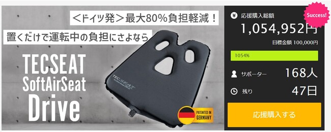 10月31日(月)よりプロジェクトスタートしましたTECSEAT Soft air Seat Drive (テックシートソフトエアシートドライブ)は早くも目標達成となりました。