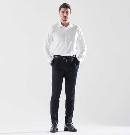 センタークリースはピンタック仕様。そのため、出先でのアイロンがけが不要で、忙しいビジネスパーソンにも最適です。