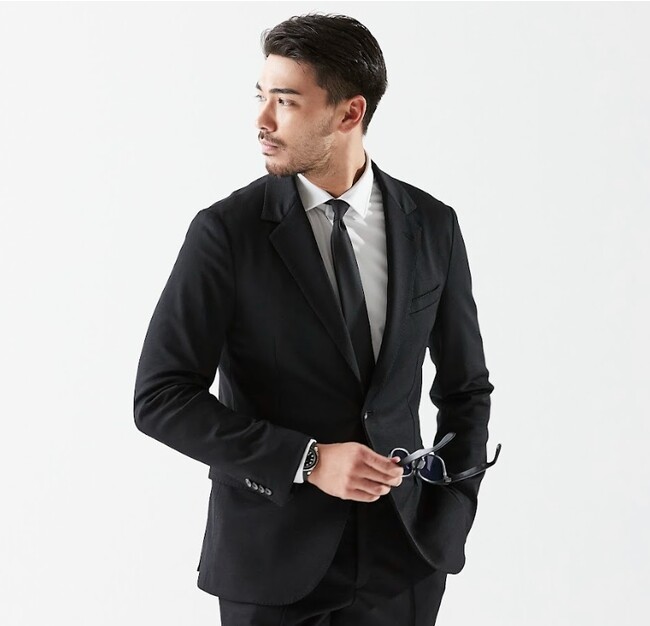 ジャケットとセットアップで合わせた、スタイリッシュなスラックスも登場。