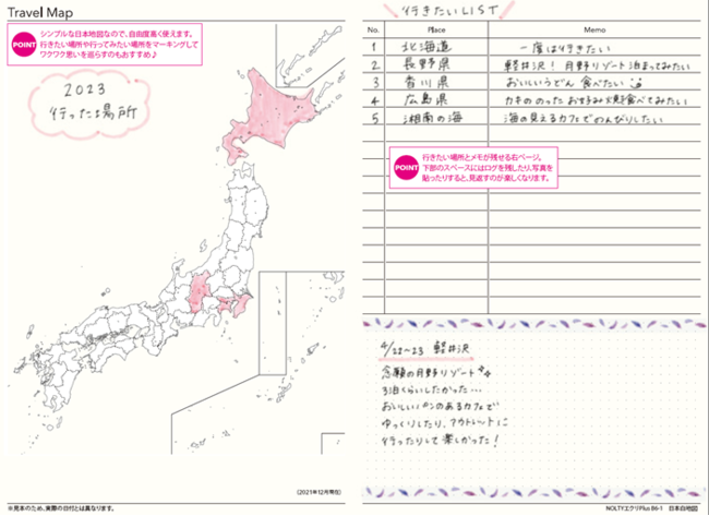 2023年版の手帳ラインナップでは、テレワークの定着によりデジタルを活用した働き方が増える中、デジタルツールとの併用にちょうど良い、自分好みにカスタマイズできて気軽に持ち運べる新シリーズ「NOLTYノートダイアリー」や、予定を書き込むだけではなく、趣味やイベントの記録を残せる「ログページ」が充実した新商品「NOLTY エクリPlus B6」など、ライフスタイルの変化に合わせた新商品を含む全210アイテムを揃えています。