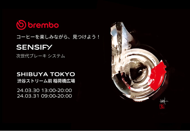 高性能ブレーキシステムの開発・製造において業界をリードするブレンボが、2024年03月30日(土)~03月31日(日)の二日間、渋谷ストリーム前 稲荷橋広場(東京都渋谷区渋谷3-21-3)にて、「Brembo Activation Tokyo」をオープンいたします。ブレンボ製ブレーキの展示、SENSIFYコンセプト体験、Brembo Store、ARフォトブース、Bremboコーヒー等の体験型展示を通して、デジタルネイティブの若い世代に焦点を当てながら、既存のブレンボファンの皆様、まだブレンボを知らない方々の両方を魅了することを目指したイベントです。