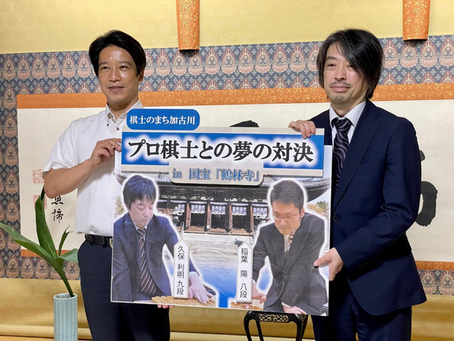 兵庫県加古川市(市長:岡田康裕)は、令和4年度のふるさと納税の返礼品より「棋士のまち 加古川」にふさわしい新しい体験型の返礼品「プロ棋士と夢の対局in国宝 鶴林寺」を開始いたします。「棋士のまち 加古川」を代表する2名の棋士、久保利明九段 または 稲葉陽八段 と、日本将棋連盟公式戦「加古川青流戦」の舞台にもなっている国宝「刀田山 鶴林寺」で対局できる、特別で非常に貴重な体験型返礼品です。