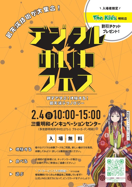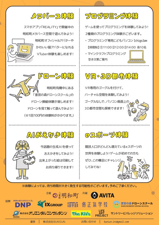 地域の方を対象にした親子向けイベント「デジタルめいわフェス」を開催します。メタバース体験や、VTuber体験、AIおえかき体験など様々なデジタル技術を使った体験コンテンツが大集合。親子で楽しく遊びながら最先端テクノロジーを学べるイベントです。・開催日時:2024年2月4日(日)10:00~15:00