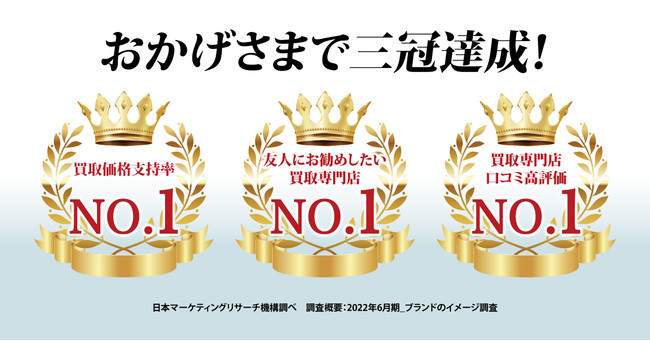 買取大吉は一般ユーザーを対象にしたリユース品の買取専門店です。貴金属やブランド品を中心に、時計や切手、古銭、骨董品、商品券、携帯電話やカメラ、その他電化製品に対応しています。大型家具以外は、ほぼ何でも買い取るという取扱品目の幅広さが「大吉」の特徴です。小売は行わず、文字通り一般ユーザーからの買取りに特化しています。2021年度の調査で「買取価格満足度」「友人にお勧めしたい買取専門店」「買取専門店口コミ高評価」で3冠を獲得している、お客様が安心して地域のコミュニティーセンターのようにご利用できる店です。47都道府県で約500店舗以上を展開し、中古ブランド業界2位の店舗数に成長しています。