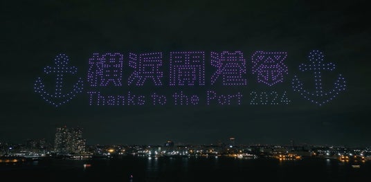 当日は、1,000機のドローンが横浜港の開港を祝福すべく、「第43回 横浜開港祭」のサブタイトルである「いつもここからなにかがはじまる」のメッセージを描いて開幕。上空150m、横幅200mの夜空に、イルカやクジラなど海の生物や船、海中を泳ぐダイバー、横浜の街並みなどのモチーフを次々と出現させ、横浜港にちなんだ“いかり”のモチーフと「横浜開港祭 Thanks to the Port 2024」のテキストを描いて約20分間のドローンショーは幕を閉じました。