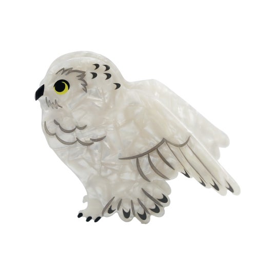 パール仕上げの上品な素材と、ヘドウィグが羽ばたく姿の遊び心あるデザインのヘアクリップです。