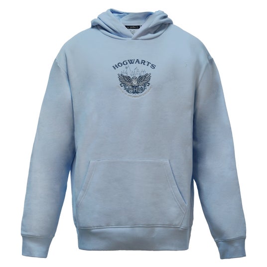 前面に大きなフロントポケットが付いたパーカー。ソフトな手触りの柔らかいジャージ素材に、 胸には「ホグワーツ」の文字と翼を広げたヘドウィグの刺繍が施されています。