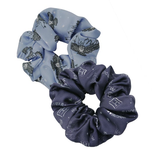 可愛いプリント生地ののシュシュ2個セット。ネイビーの方にはホグワーツ城と星のプリントが、ベビーブルーの方にはヘドウィグが描かれています。
