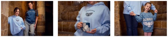 翼を広げたヘドウィグとクラシックな「ホグワーツ」の文字のワッペンが施された子ども用スウェット。100%コットンの柔らかなフィット感が優しく包み込みます。