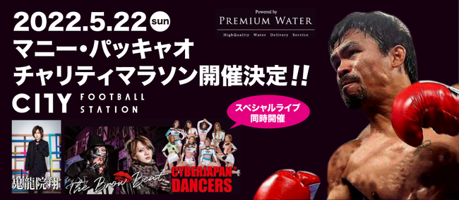 5月22日(日)に栃木シティのホームスタジアムである「CITY FOOTBALL STATION」で、世界で唯一の8階級制覇王者マニー・パッキャオが率いる、マニー・パッキャオファンデーション主催のチャリティイベントが日本で初開催となり、チャリティマラソンの他、チャリティLIVEが開催されます。