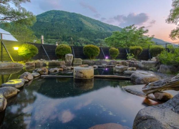 グランピング宿泊の方は、旅館の大浴場の内湯、露天風呂、総ヒノキ造りの貸切露天風呂をご利用頂けて無色透明で肌ざわりなめらかで体の芯から温まる至福のお湯をご堪能いただけます。