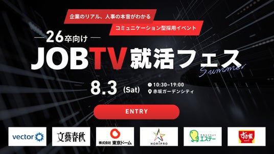 株式会社ベクトル(本社:東京都港区、代表取締役会長兼社長:西江 肇司、東証プライム:6058、以下ベクトル)が運営する動画就活のJOBTV(https://jobtv.jp)は企業・学生の心からのマッチングをサポートする本音就活イベント『JOBTV就活フェス』の参加学生受付を開始いたします。