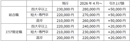 1.新卒初任給引き上げ:2026年4月入社より適用