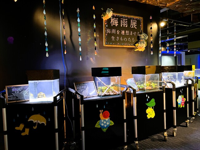 今回は、「梅雨展~梅雨を連想させる生きものたち~」と題し、梅雨の代表的な生きものであるアマガエルやカタツムリをはじめ、名前から梅雨を連想させる生きものたちを展示しています。