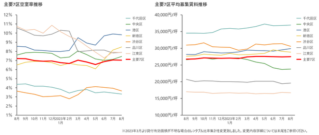 三菱地所リアルエステートサービス株式会社(本社:東京都千代田区大手町1-9-2、代表取締役社⾧:湯浅哲生)は、2023年8月度の東京主要7区(千代田区、中央区、港区、新宿区、渋谷区、品川区、江東区)の大規模ビル※1のマーケットデータをまとめた「空室率レポート」を本日、9月11日に公表します。