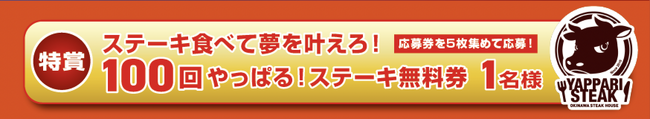 ※お客様の個人情報は、やっぱりステーキを運営する、株式会社ディーズプランニングで管理し、本キャンペーンの抽選作業の為に利用します。