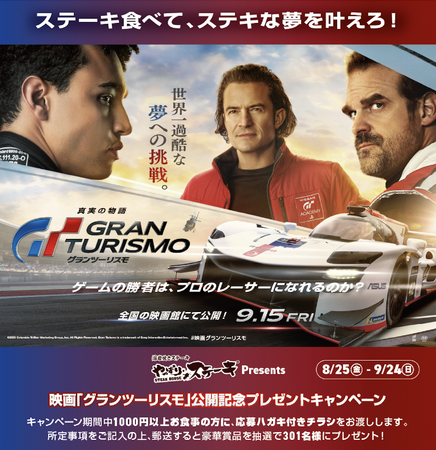 9月15日(金)公開の映画「グランツーリスモ」とやっぱりステーキのコラボが実現!