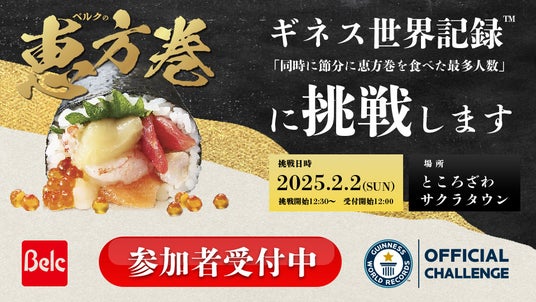 ところざわサクラタウンにて参加者全員で恵方を向いてベルクの恵方巻を同時に食べるギネス世界記録へ挑戦いたします。