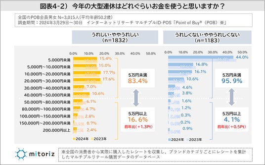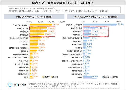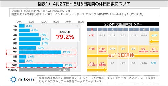 株式会社mitoriz(本社:東京都港区、代表取締役社長:木名瀬博)は、消費者購買行動データサービス「Point of Buy(R)(以下、POB)」の会員3,015人に「大型連休に関する調査」を実施致しました。