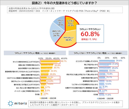 大型連休をうれしいと思っている人は60.8%!2023年比で7.1Ptダウン