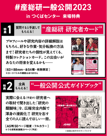「研究者カード」と「研究者漫画」で研究者たちの情熱に触れる、かつてない一般公開となる予定です。ぜひご来場、お待ちしています!