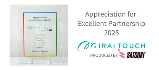 インクルーシブ電子黒板『MIRAI TOUCH』の企画・開発・販売を行う、さつき株式会社(本社:大阪市中央区 代表取締役社長:祖父江 洋二郎 以下:当社)は、2025年7月18日(金)に開催された Chrome Enterprise / Google for Education 主催 Partner Summit Japan 2025 において、Google for Education および日本の教育業界の発展に貢献したとして、感謝状「Appreciation for Excellent Partnership 2025」を受贈いたしました。