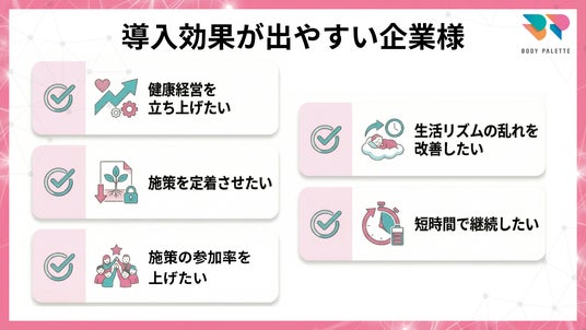 健康経営の推進視点(意思決定・実装の回し方)と、健康運動指導士の視点(短時間でも負荷を下げる考え方、継続設計)を合わせ、企業ごとに運用を設計することが重要になります。