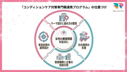 フラクタルワークアウト株式会社(本社:東京都渋谷区神宮前、代表取締役:高瀬雅弘)は、女性の健康課題を起点にテーマ設計と進め方を整理する「コンディションケア対策専門職連携プログラム」をリリースしました。